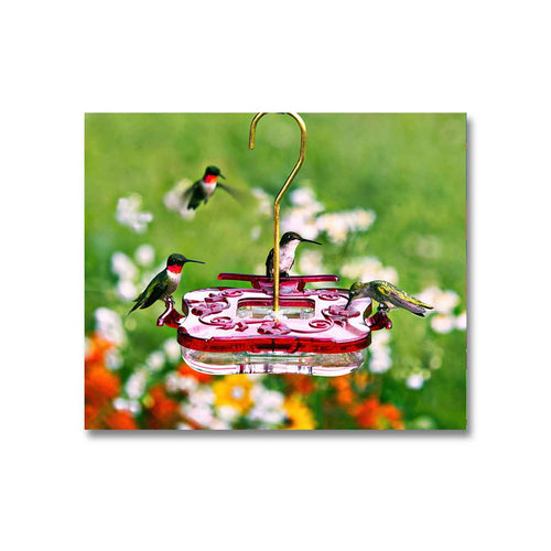 This HighView Square Hummingbird Feeder has a generous 8 oz. capacity, sturdy polycarbonate construction and is backed with a lifetime guarantee that combine to make this feeder very popular with hummingbirds.