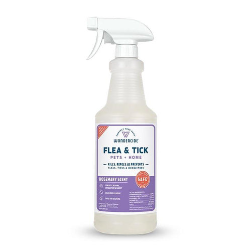 PRODUCT COVERAGE. When using as a flea treatment and killer for house and furniture, a 32 oz. bottle will treat 400 square feet, while a gallon will treat up to 1,500 square feet. When using this flea and tick spray as a natural remedy for dogs and cats, a 16 oz. bottle will typically last up to three months for a one-pet family with a moderate activity level and climate.
